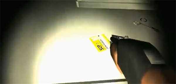 2、接着,在初始房间的椅子上找到手电筒”,这将在黑暗中为你提供必要的照明。