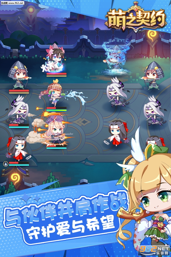 《萌之契约》是一款休闲与养肝结合的放置类卡牌二次元手游。游戏讲述主角为保护学院水晶召唤英魂伙伴战胜敌人的冒险旅程。游戏除轻松诙谐又丰富的剧情外,还提供丰富多样的自由搭配玩法。玩家可在技能、天赋、装备上选择不同的玩法套路组合。随着每一位新的英魂伙伴的加入,都会增加更多策略操作空间与乐趣,同时酷炫、华丽的技能特效又为战斗增添了浓厚的效果氛围。Q版清新的画风和简单的操作让玩家轻松的享受游戏带来的乐趣。