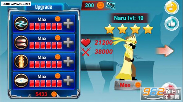 2、拥有鸣人、卡卡西、佐助三个人物选择,都有技能独特的技能形态与攻击;