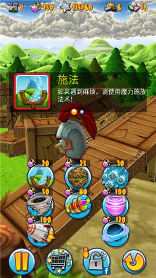 完成关卡任务后可获得魔法力量,用于强化弹弓性能。例如添加瞄准辅助线提高射击精度,使用地震技能炸飞敌人,甚至召唤毁灭性的月面打击!