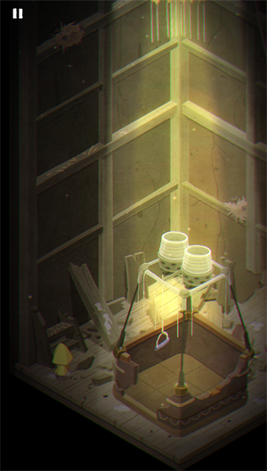 老太太胳膊拽下来拿到摇动的把手那里,正常应该是把手丢下去,然后小六来转动把手然后主人公爬上去,拿吊顶上的钥匙。
