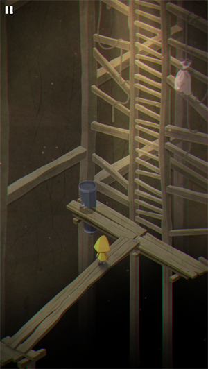 1、打开极小梦魇手机版,点击开始进入游戏。里面是个穿个黄色雨衣的小女孩,为逃脱坏人,我们要帮助她顺利逃脱。