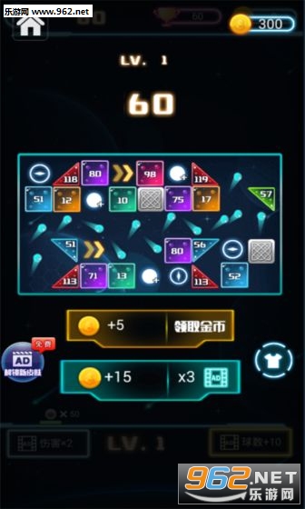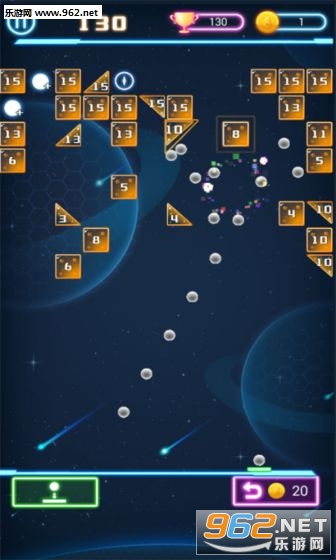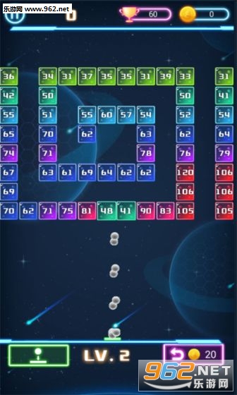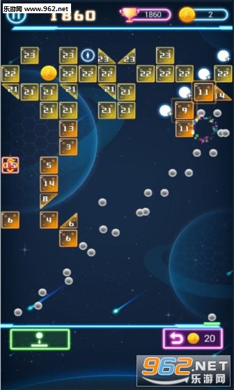 游戏时,玩家只需要左右滑动屏幕控制弹球的发射方向;