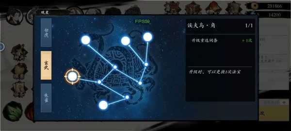 图内可以免费刷新一次选择法宝,观星点出玄武系法宝刷新后可以多一次,是每次升级都能换一次。
