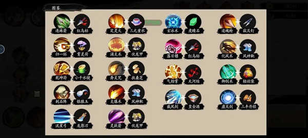 图内技能俗称法宝+装备构成,主法宝7以后+任意1法宝合成超武。图没有效果介绍。初始无脑选涌炎术,关卡现在做到合体后期了,刷一把1万+铜币+炼丹药材!所以尽量推到你能推到的最高图,再回来刷实力能过的,过不了图没有奖励。
