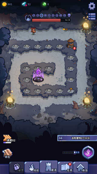 点击建造按钮,选择合适的防御塔类型进行部署,从而构筑起有效的防线抵御魔物的入侵。