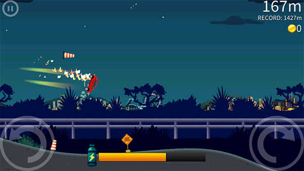 1、在游戏里面玩家就会发现奔跑的时间越久就可以获得更多的分数,那么玩家的能量就是最重要的,玩家在游戏里面需要接到更多的汽油罐,这样才能为玩家提供无限的动力;