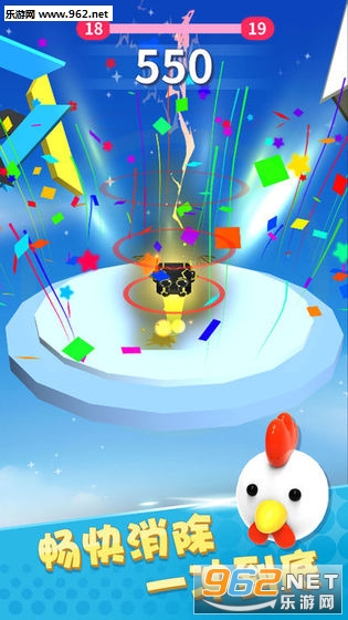 点击屏幕按住不放,让弹球一层一层地击穿彩色砖块,嗖嗖嗖地直达地面,就可以过关了!