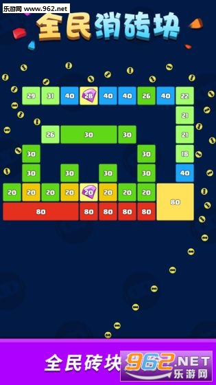 《全民消砖块最新版》是一款画面简约的打砖块闯关休闲手游,游戏中玩家可以一次发射数十个小球去打击砖块,砖块上的数字为零则可以击碎,物理弹射,注意调整小球发射的角度,如果砖块触底游戏就结束了。