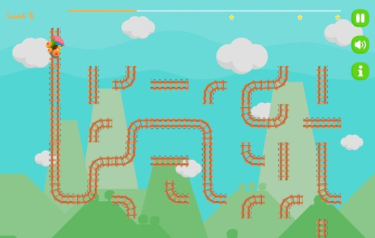 点击每段小轨道,旋转方向,连通轨道,为小火车铺路,帮助小火车到达彼岸。
