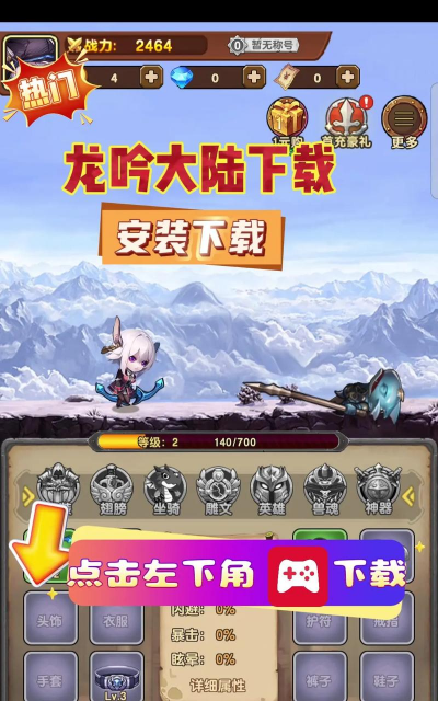 《龙吟大陆变态版》是一款西方rpg神魔故事,让海量的玩家们一起来这款龙吟大陆手游中体验到更多好玩趣味的内容,让大家一起来这里感受到龙吟大陆的恢弘战斗去气势,下面就是小编为大家带来的游戏下载地址!