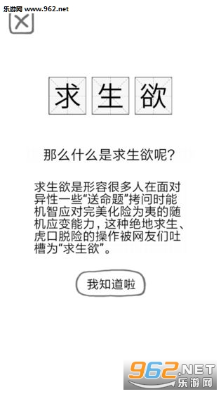 这个游戏很简单,按照题目,选择一个答案回答就可以了,失败了会扣除求生欲,回答正确保住小命只能获得一次求生欲。