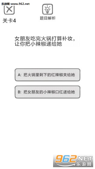 《送命题保命指南安卓版》是一款为男性同胞们打造的保命指南游戏,正所谓女人心海底针,你很难弄准对方到底是什么意思,本款游戏加入了众多场景的女友提问的环节,小伙伴们快来学习一些保命的方法吧。