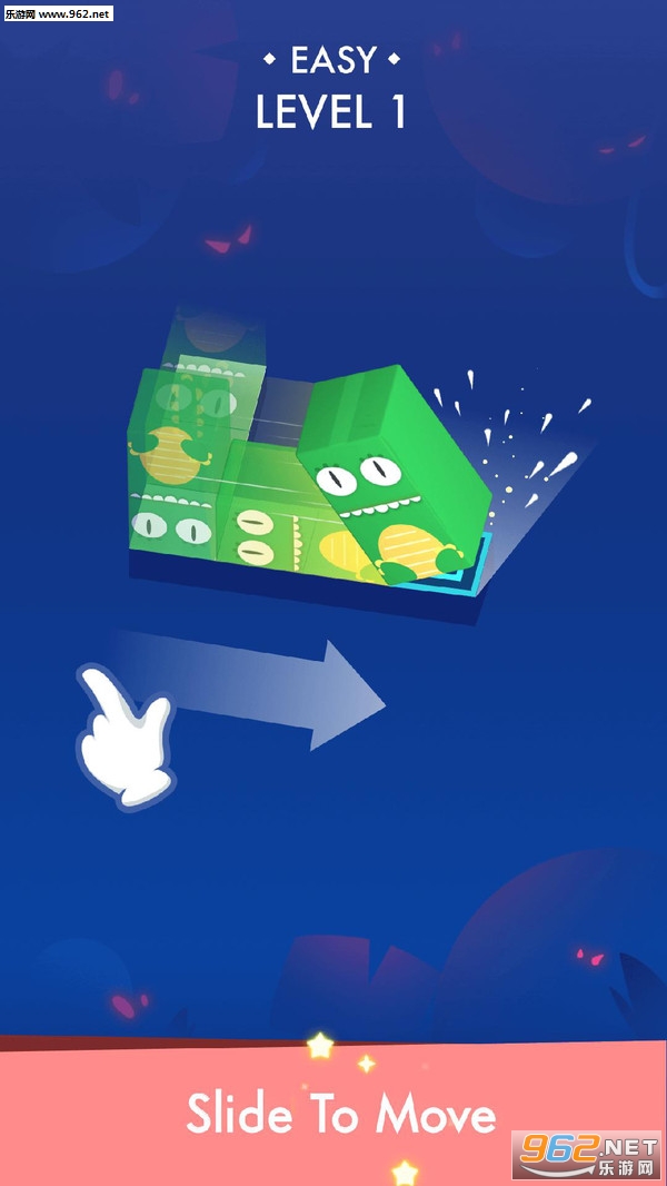 1、这款游戏通过滑动屏幕来进行方块翻滚,将指定的方块,翻滚到指定的位置。