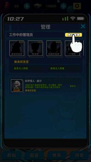进入管理界面,在工作中的管理员”板块调整厨师阵容。