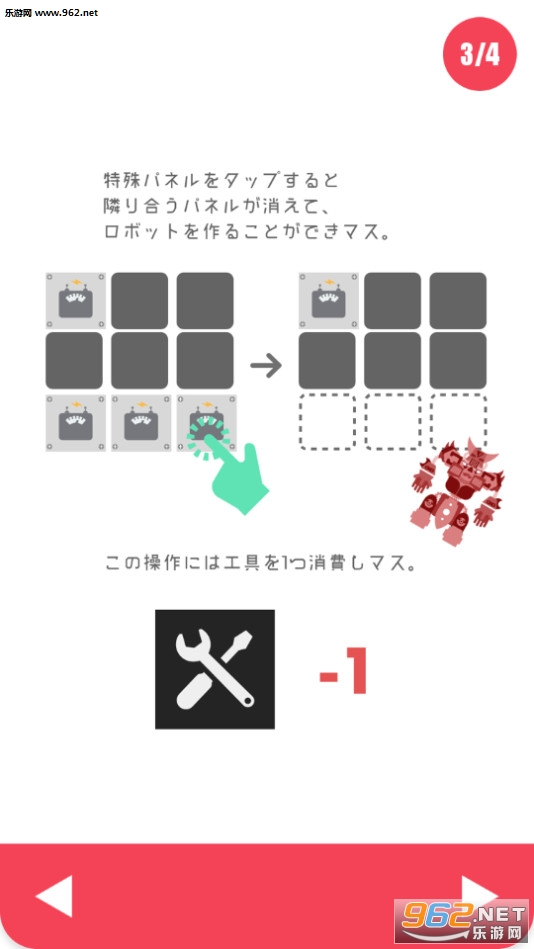 3、工具零件→可以消耗盘面上的成品零件制作机器人。
