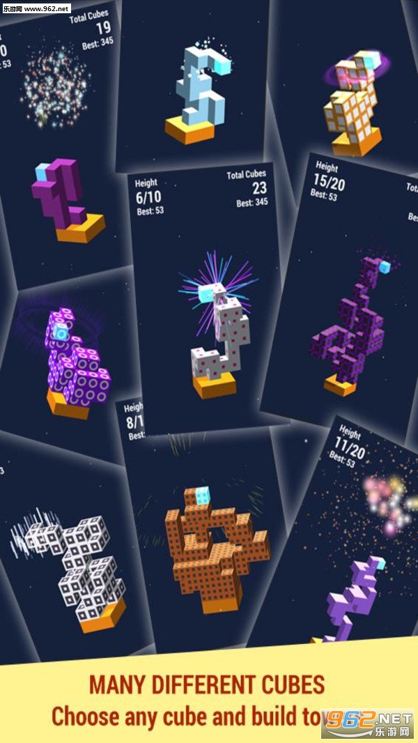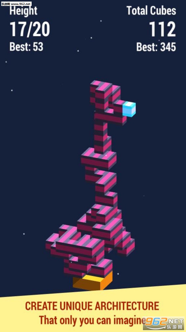 一款卡通风格的益智休闲类游戏,游戏中你将在一个平台上开始你的建造玩法,随机出现的方块,点击将会固定它的位置,下一个方块出现在它的周围,不断改变的位置,找到一个合适的地方就固定下来吧。