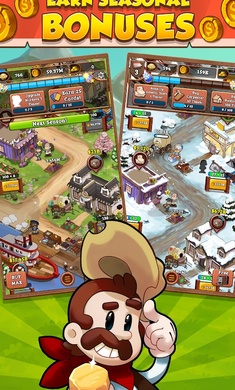 《闲置的西部小镇》(Idle Frontier)是一款卡通风格的模拟经营游戏,游戏中玩家将经营一座西部的小镇,不断的招募各种人员,建立西部独有的建筑,通过马车进行贸易,修建铁路轨道,游戏的玩法轻松有趣,赶快下载体验吧!