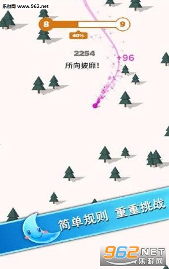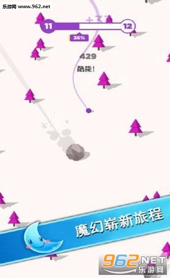 《球球滑雪游戏》是一款非常有趣的休闲益智类游戏,这款游戏画面设计得非常的简单,就是设计了一个极为简易的山地滑雪场,还有很多的树木,玩家需要在游戏中控制好自己的小球球,从很高的地方滑下,尽量避免撞到这些树木,因为如果你撞到树木的话会有一个减速的过程,很容易被后面的雪崩追上。