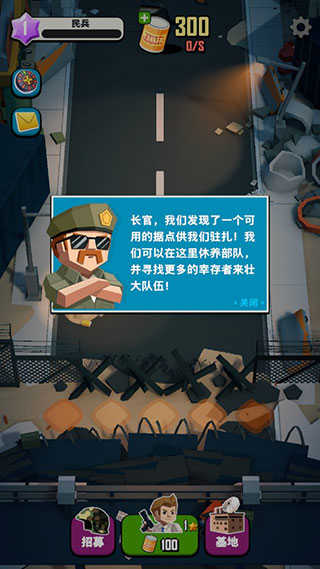 1、搜索营地拯救幸存者,招募士兵抵抗死者的疯狂攻击。