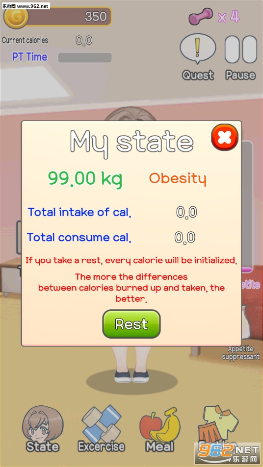一款非常有趣的模拟减肥游戏,游戏中玩家需要摄入足够的卡路里才能够进行锻炼,但是进食又会增肥,玩家需要平衡吃与锻炼之间的平衡,游戏中还有换装系统,赶快变回原来的样子吧!推荐给喜欢模拟游戏的玩家。