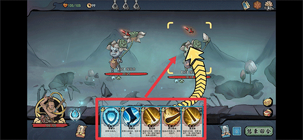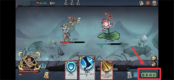 5、当发力值不足时是无法使用卡牌的,这时玩家需要点击右下角结束回合,并在敌人发起攻击后进入下一轮的进攻