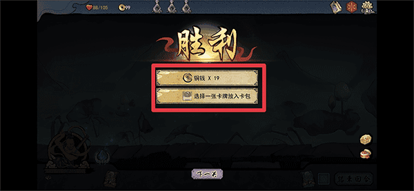 6、战斗结束后选择铜钱奖励或者卡牌奖励