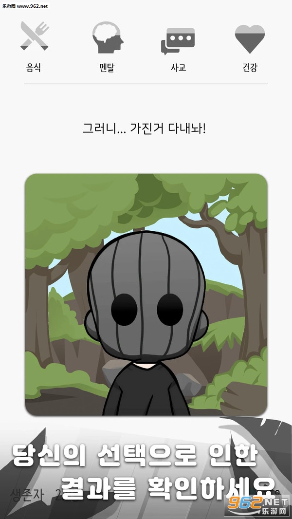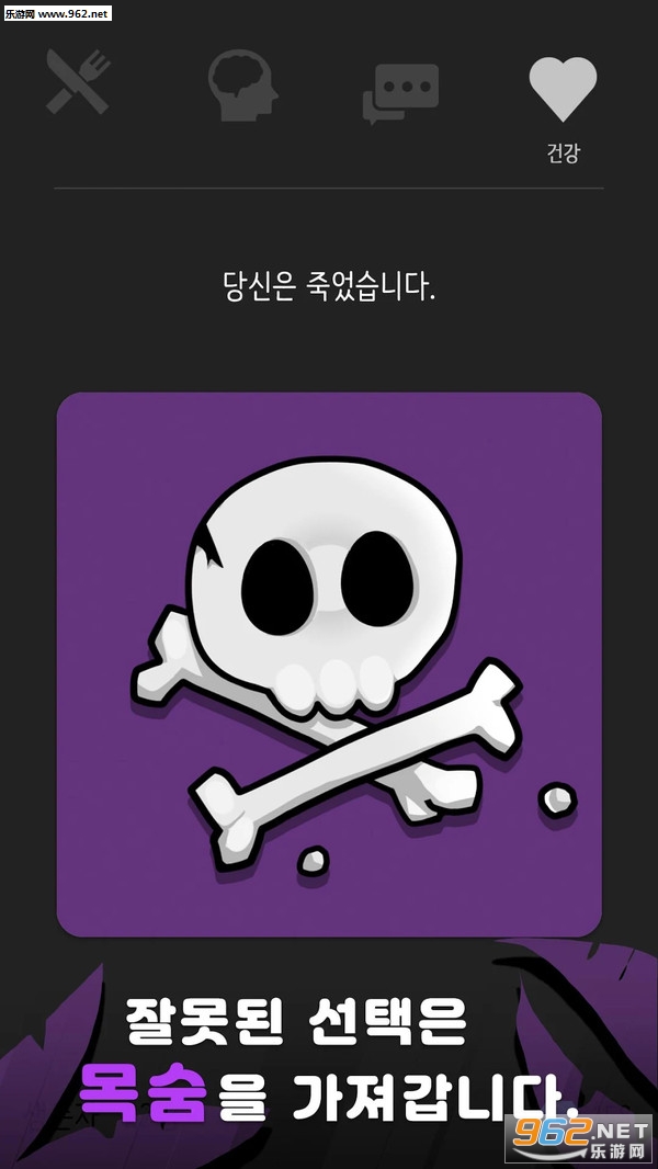 不同的选择会造成上方的属性栏的改变,当某一项过低或者为0之后,你就会死亡