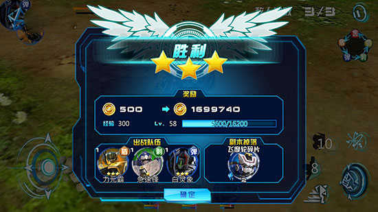 通关后会给出关卡评分以及奖励金币和玩家角色经验之。如果有掉落碎片的话也会出现提示。