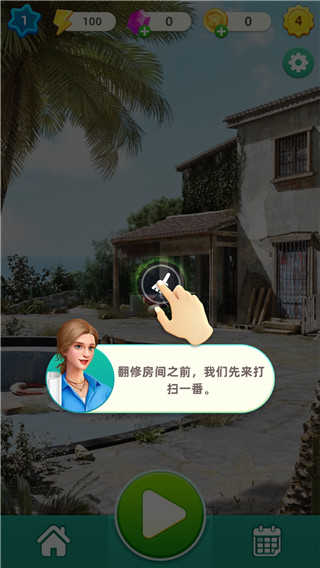 1、安装游戏后,跟随引导剧情进入院子清理环节。