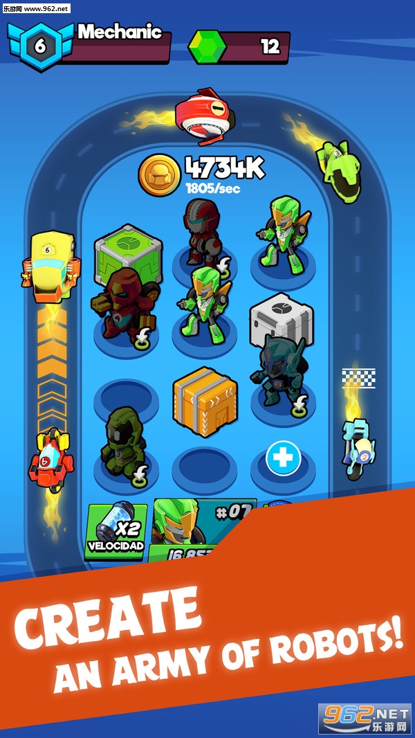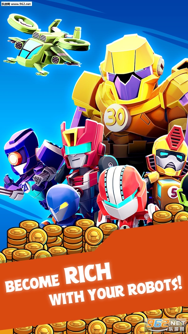 画风可爱的休闲游戏,你将建立属于你的机器人帝国,招募更多的机器人,每个都有自己的技能,升级你的建筑!赚金币!用获取来的金币解锁更多内容。