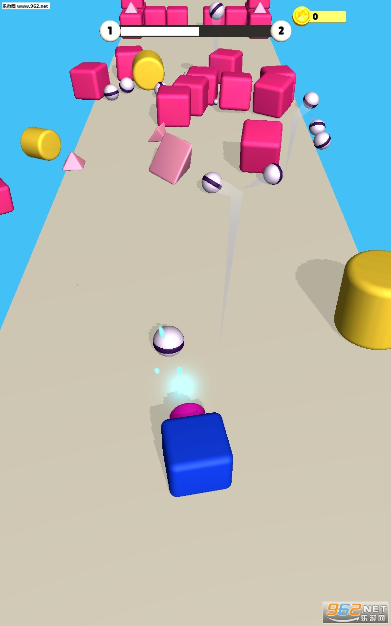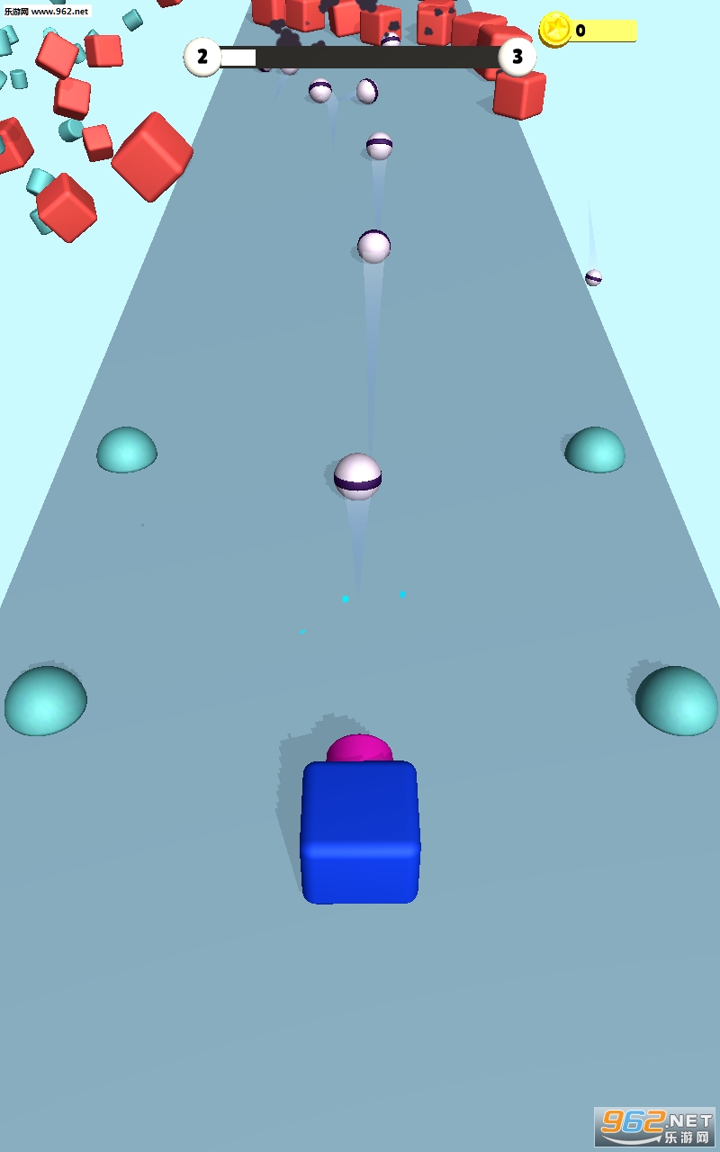 方块射手4D是一款物理类的休闲手游,玩家在游戏中,需要控制炮台发射弹球,撞击关卡当中的障碍物,进行连锁反应,从而彻底摧毁前方由方块积木搭建而成的建筑,在一定的发射次数当中彻底摧毁。