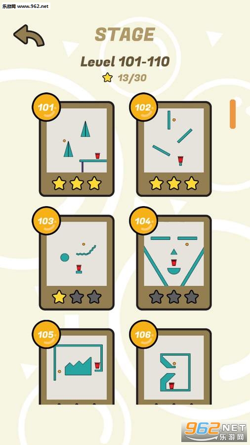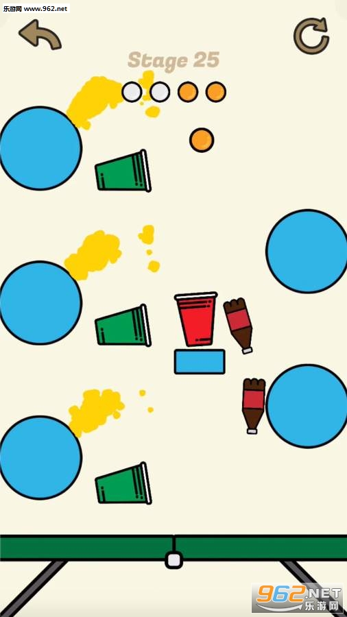 3、不一样的关卡难度,随意选择,尽量让这些乒乓球全部落入瓶中。