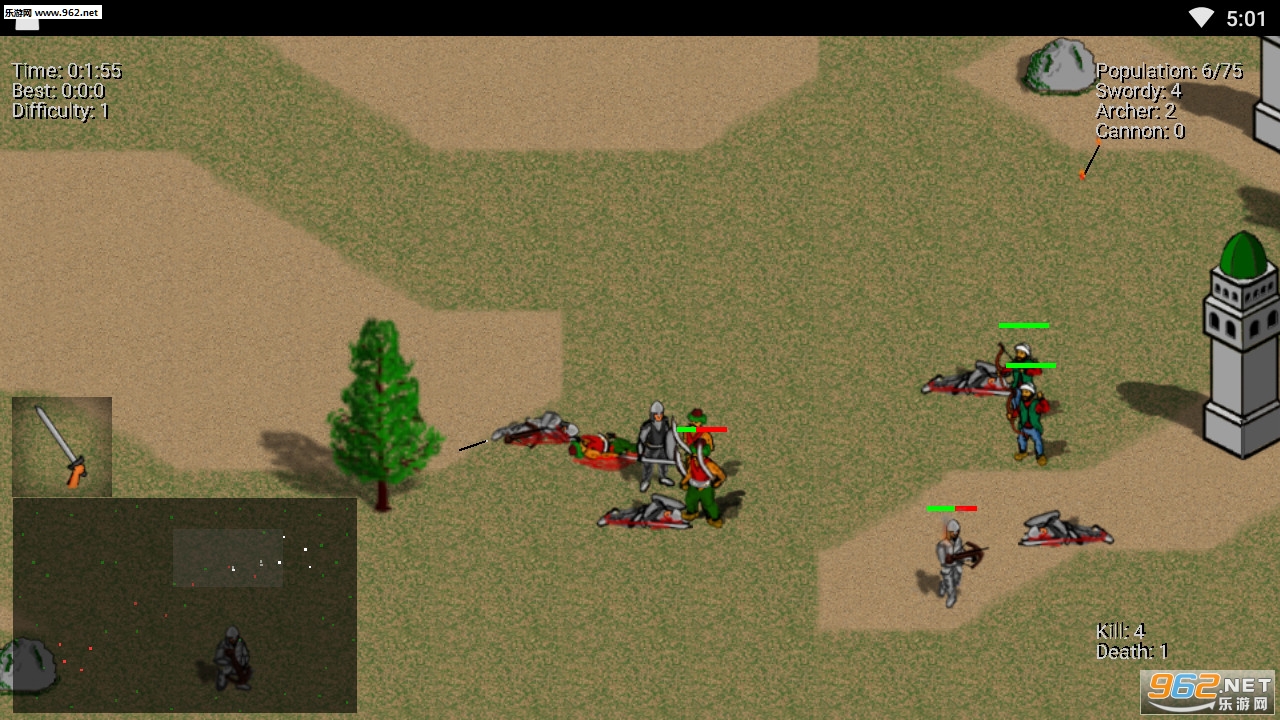 《索迪》是一款卡通复古风格的即时战略游戏,游戏的玩法类似于帝国时代,但是做出了许多的简化,只剩下军事的操作,游戏中玩家需要保卫兵营,调兵遣将,最终集结军队进攻敌人的大本营。游戏的操作简单,只需要点击即可,赶快下载体验吧!