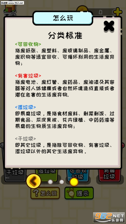 一款非常有趣的休闲游戏,他将垃圾分类死板的背记转化为生动有趣的游戏,让人们能快速的学习到垃圾分类的知识和技巧,寓教于乐,推荐给喜欢休闲游戏的玩家。