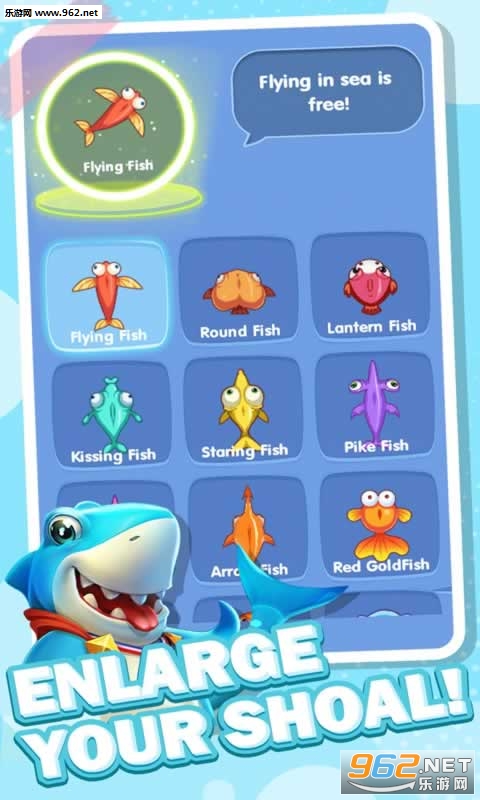 进入海洋,你变成了一只小小的鱼儿,要想不被大鱼吃掉,你就要努力在你能到达的范围内增加你的同伴,同伴越多,等级越高,你就可以去合并其他的鱼啦!尽可能多地收集无家可归的鱼,让你的鱼群变成整个海洋中最强大的团队。