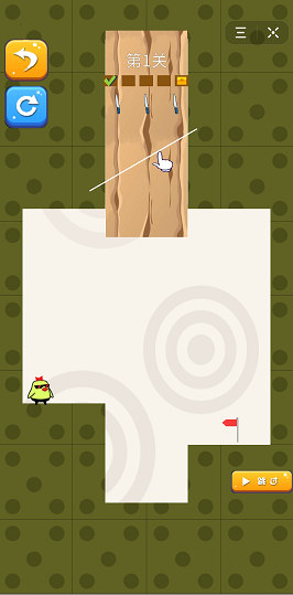 游戏的核心玩法是为小鸡铺设一条安全的道路。玩家需要利用关卡中提供的道具,如超大块的木头,通过切割和拼接,为小鸡创造一条可以顺利通过的路径。