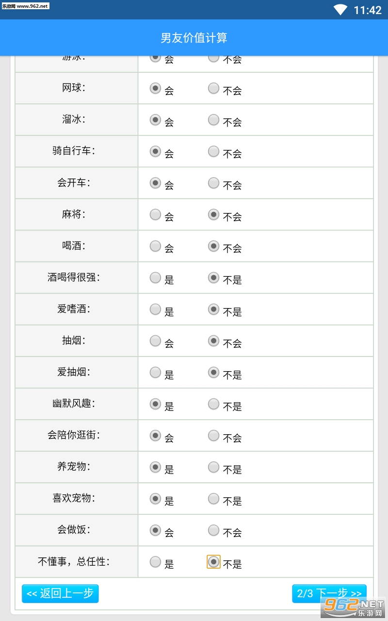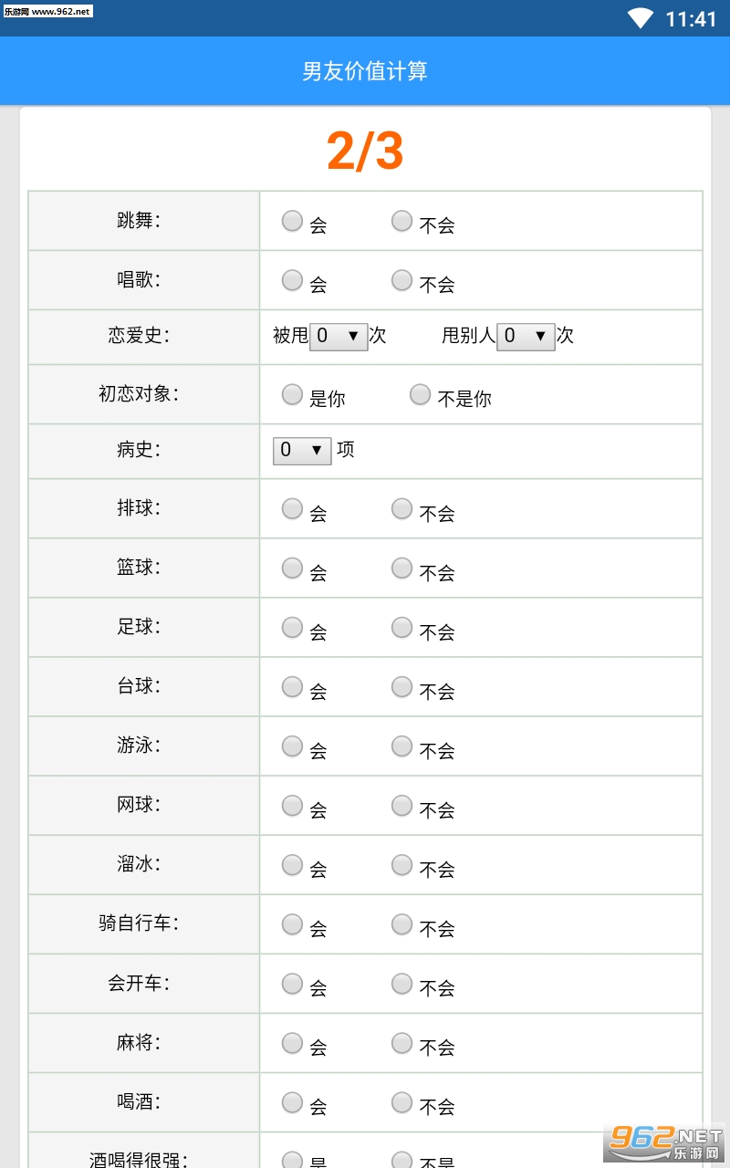 2、可以输入另一半户不会跳舞,会不会唱歌,有没有什么疾病;
