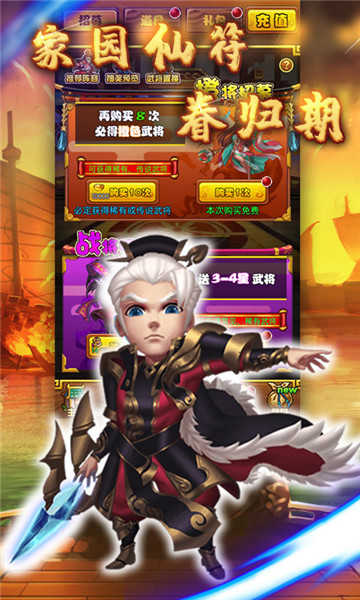 招募海量的三国时期的武将来为你战斗,任务形象精致,不同的角色会有不同的技能。