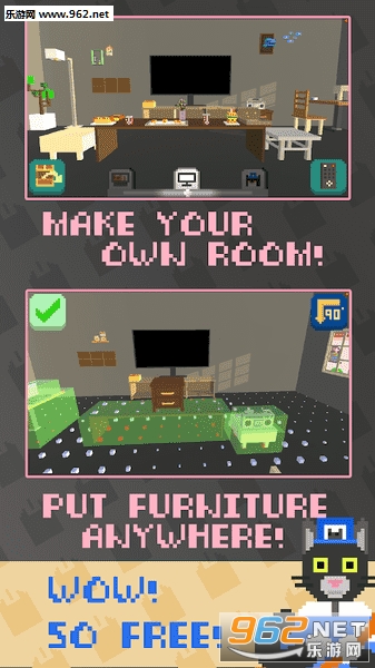 《我的客厅安卓版》是一款很有意思的休闲像素游戏,游戏中玩家扮演一只调皮的猫咪,你很喜欢打翻那些桌子上的东西,你要趁你的主人不注意的时候偷偷的将那些她放在桌子上的东西打翻到地上去,但是要小心不要被主人发现哟。