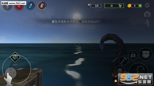 3、通过木筏漂流生存下来,收集食材维持生命;