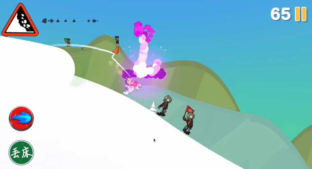 屏幕左侧上方的雪崩警示牌会在雪堆即将接近时不断地闪烁以示警告