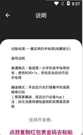 4、普通模式在打开应用后摇晃手机即可打开,蹦迪模式需要开启闪光灯摇晃。