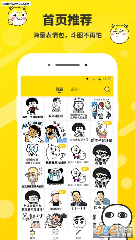 表情包制作器统统帮你解决,丰富热门的表情包素材、表情贴纸、表情文字,帮你自制斗图表情包,斗图必备的斗图神器!