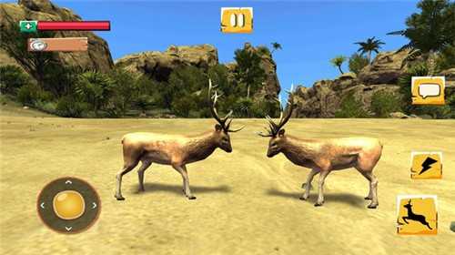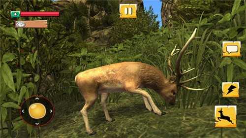 游戏的控制非常简单,屏幕的左边是游戏的方向键用来控制游戏中路的上下左右的移动,右边是奔跑跳跃和攻击,在空白处可以旋转视角。在吃食物的时候只要找到有亮光的草哪里就会出现两个选项一个是吃一个是收集,吃食物会增加你的血量,我很好记收集食物是少女鬼,难道鹿和牛一样都有两个胃的吗。