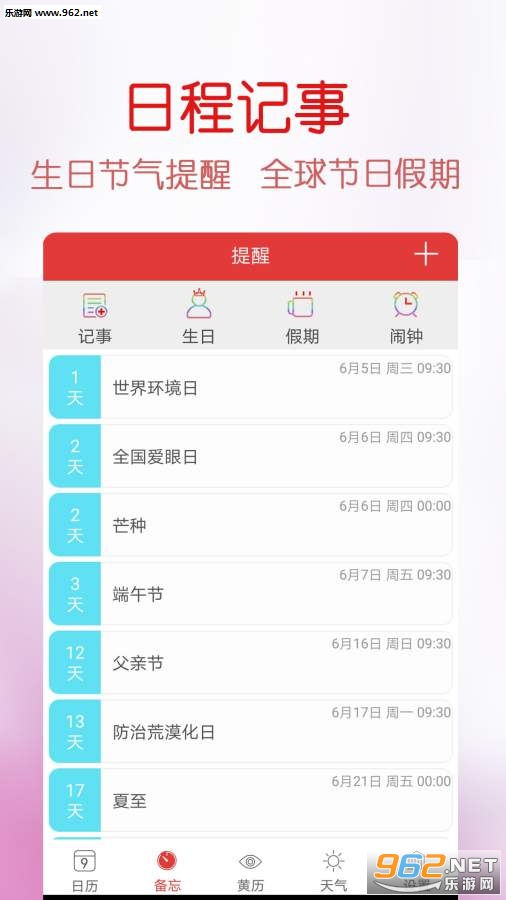 万年历福历是一款难得的专业万年历软件。它包含日历,黄历,天气,记事,节假日提醒等实用功能。并帮助您管理生日,倒数日,为您提供每日宜忌,时辰吉凶,生肖运势,周公解梦,八字解密,并融合佛历,藏历。是一款一站式安装的全能日历应用。