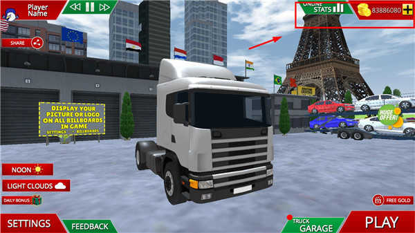 3、你可以随心所欲的装饰卡车,修改汽车的性能,游戏中有最长的驾驶路线,玩家必须耐心驾驶