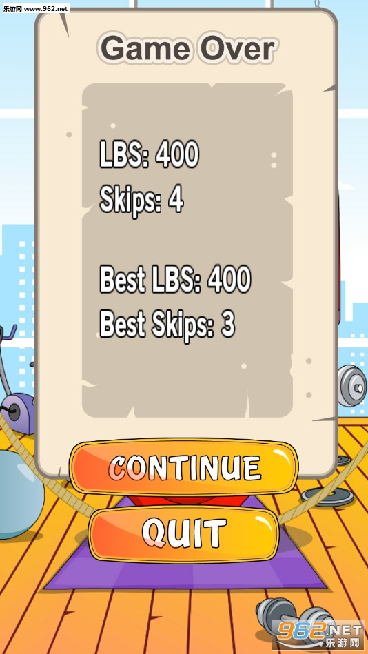趣味的点击游戏,游戏的玩法就是点击人物跳跃,通过跳绳来一点点的将肉减掉,如果起跳不及时就会被绳子绊到,挑战就结束了,喜欢的朋友可以下载试试。