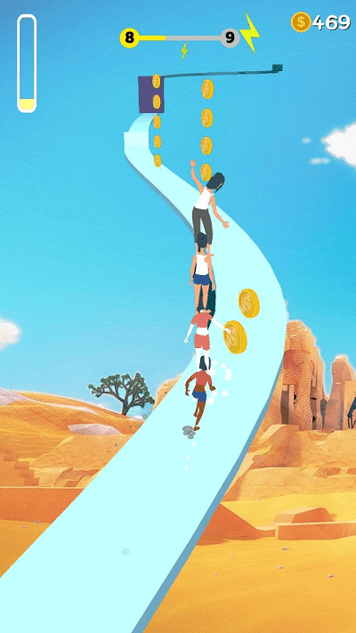 非常不错的趣味跑酷小游戏,在游戏中你讲一边跑一边拉拢附近的人组成一个人梯。人梯当然是越高越好啦,越高你就能收集到越多的奖励,还能轻松跨过障碍物。游戏玩法非常轻松,在游戏的过程中还设置了很多小惊喜,来试试吧.