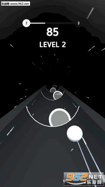 2、游戏是一个无尽跑酷游戏,跟随音乐的节奏,速度会越来越快,考验你的反应速度是否能够跟上。